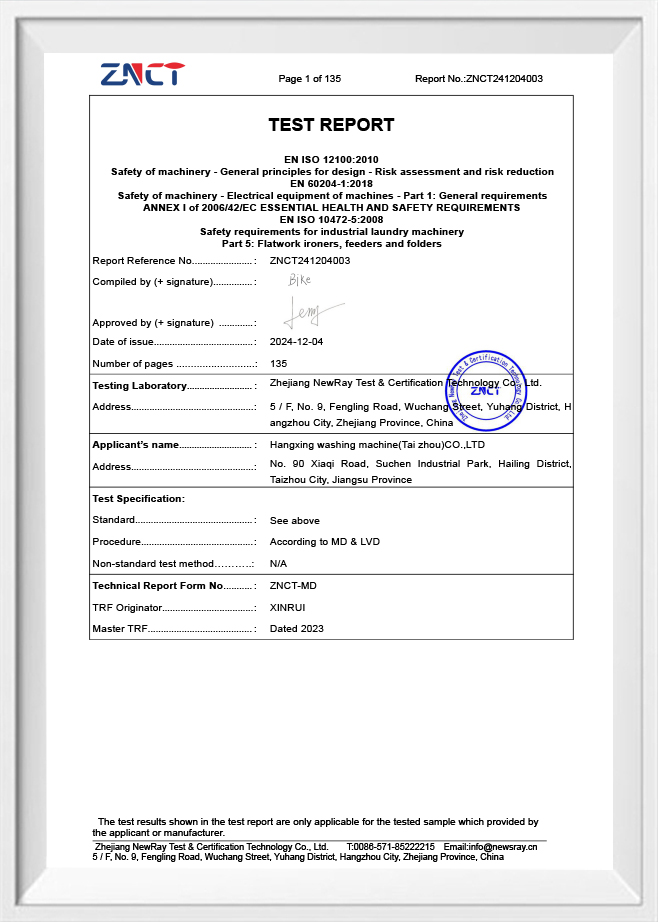 Ulat sa Pagsubok sa Pang -industriya ng Washing Machine